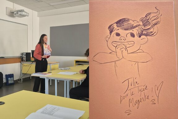 Par ALBA TERENTJEV, publié le lundi 27 avril 2026 09:32 - Mis à jour le lundi 27 avril 2026 09:51Dans le cadre de la Fête du livre jeunesse de Villeurbanne, Julie Ricossé est venue présenter son travail humaniste aux élèves de Seconde MARVI du lycée Magenta. -