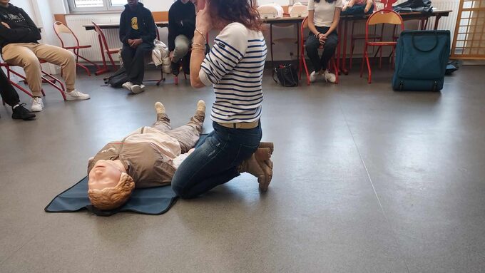 Stéphanie Weil est professeure d’éducation physique et sportive au lycée Magenta et elle enseigne depuis de nombreuses années à sauver des vies. Elle nous propose chaque année de nous former à la formation PSC1 (formation de Prévention et de Secours Civiques de niveau 1), le SST Sauveteur Secouriste du travail, à la prévention des risques professionnels ainsi qu’aux gestes de premiers secours. La formation a eu lieu cette année le jeudi 23 et le vendredi 24 novembre 2023. Les inscriptions étaient ouvertes à tous les membres du lycée Magenta : aux professeur(e)s, aux élèves mais aussi au personnel administratif. Grâce à une pédagogie efficace Mme Weil nous inculque des gestes indispensables qui peuvent sauver des vies. Ces gestes de premiers secours augmentent les chances de survie des victimes de 20%.