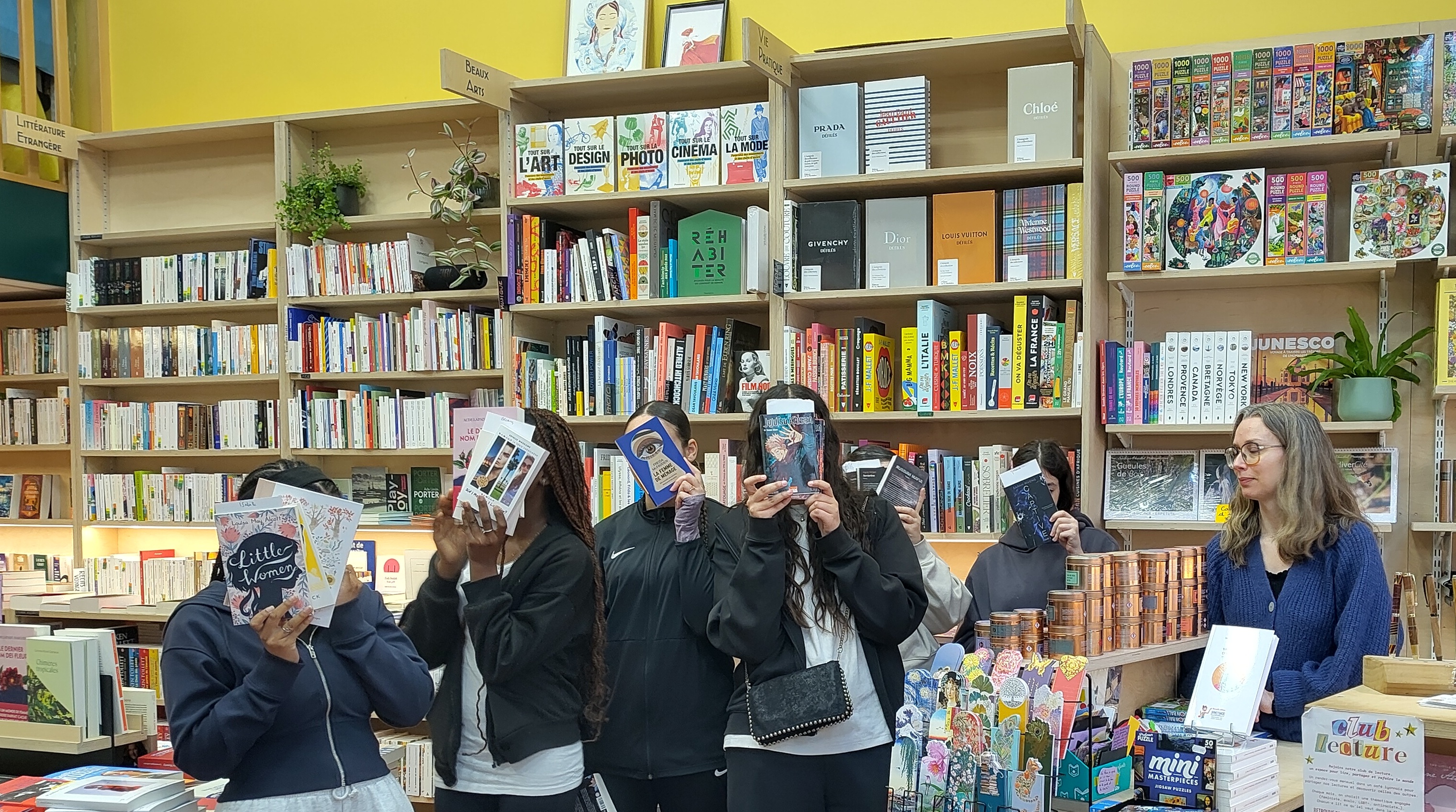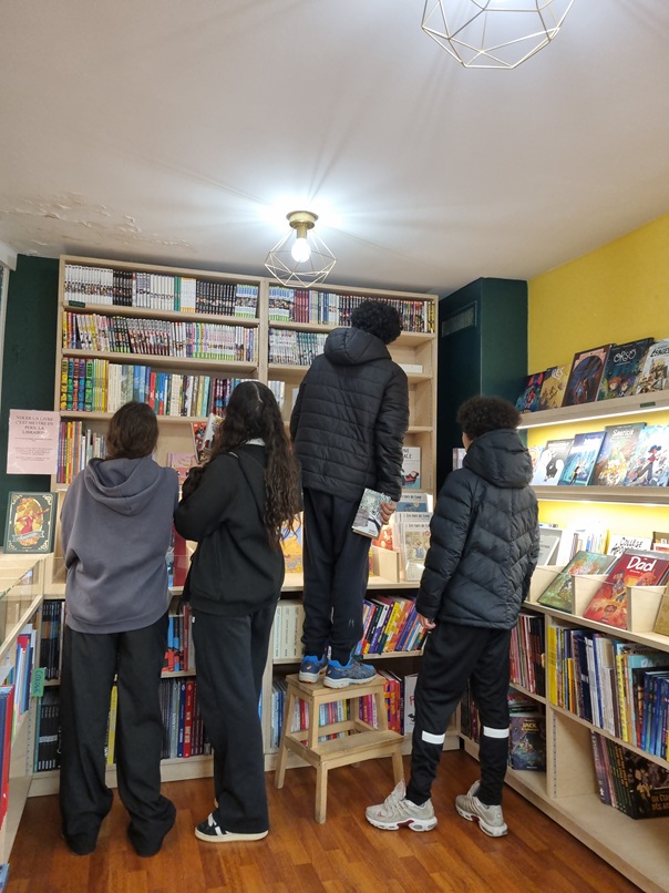 Après cette première rencontre en classe, les élèves se sont rendus en demi-groupe dans sa librairie, à 10 minutes à pied du lycée. Ils ont observé son agencement, les techniques de mise en valeur des livres et ont ensuite pris le temps de flâner dans les rayons, en demandant conseil, pour choisir des livres qui pourraient leur plaire. En effet, dans le cadre du dispositif Jeunes en librairie, la région Auvergne Rhônes Alpes offre 30€ de livres à chaque élève ! Ce sont les bras bien pleins, et le sourire aux lèvres qu'ils ont quitté la librairie!